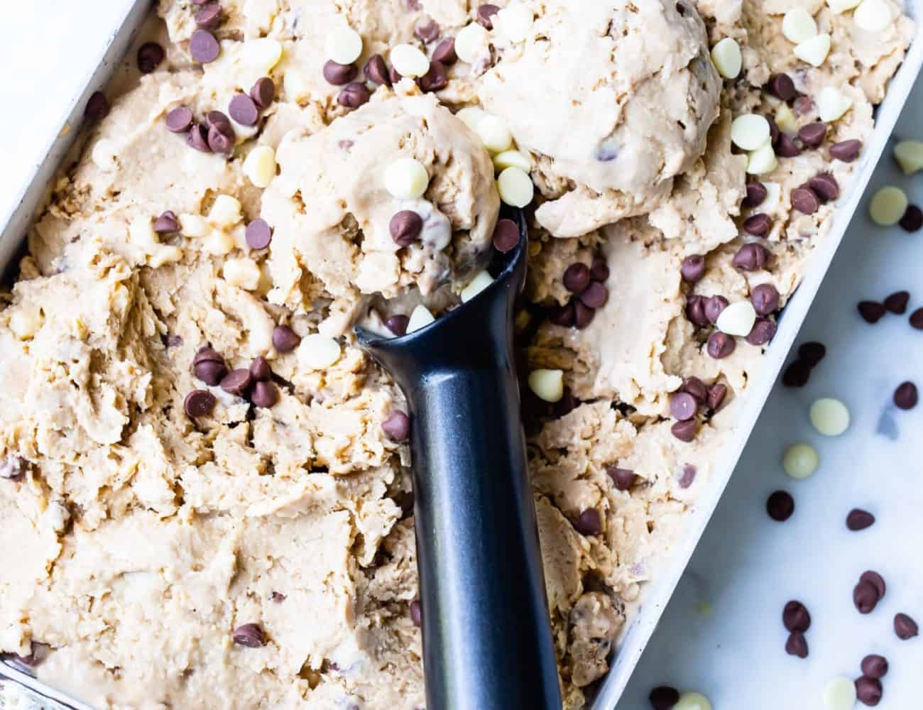 Ich habe mich lange Zeit gegen das Eismachen gewährt. Was man dafür alles braucht. Und geschmacklich kommt das doch sowieso nicht an das Original ran. Denkste. Beides ist totaler Quatsch. Wer Eis selber machen möchte, braucht eigentlich überhaupt nicht viel. Nur ein Tiefkühlfach. Mehr nicht. Ich habe mir vor drei Jahren eine Eismaschine zugelegt. Deshalb bekommst du hier auch ein Rezept für die Eismaschine. Theoretisch kannst du dein Cookie Dough Eis aber auch ohne Maschine zubereiten. Dafür das Eis einfach alle 30 Minuten aus dem Tiefkühlfach nehmen und ein Mal kräftig umrühren. So können sich auch garantiert keine Eiskristalle bilden. Alternative: Du bereitest ein Eis am Stiel vor. So wie dieses Erdbeereis am Stiel.