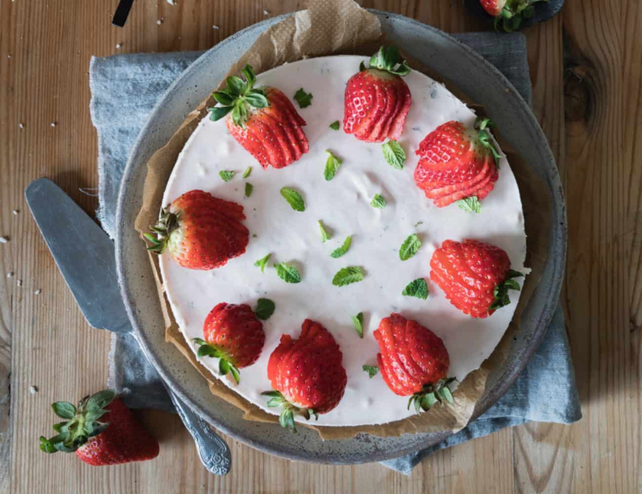 Heute bleibt der Ofen kalt! Denn deine Erdbeer-Joghurt-Torte bereitest du im Kühlschrank zu. Wie das geht? Boden in die Form drücken und Joghurtmasse darauf verteilen – fertig. Fast – jetzt muss sie nur noch kühlen.