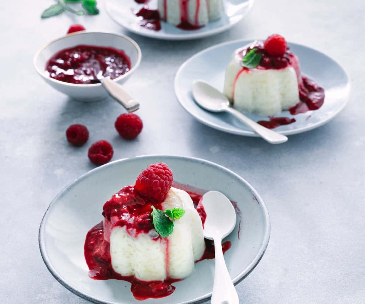 Das Rezept für deine Milchreis-Pannacotta mit Himbeerkompott