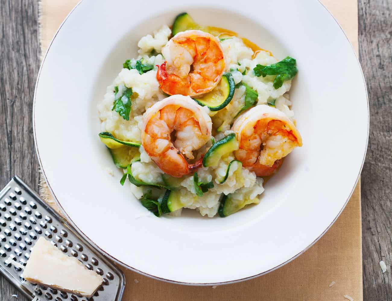 Risotto schmeckt nur im Winter? Papperlapapp. Risotto geht immer. Zu jeder Jahreszeit. Also auch ganz klar in den sonnigen Monaten. Dann am liebsten als Risotto mit Zucchini oder Risotto Milanese. Spargel ist im cremigen Reis auch gut. Aber auf Zucchini ist eben immer Verlass. Für mich gibt’s den Klassiker also mit jenem Gemüse, frischer Petersilie und einem Spritzer Zitrone. Für den Mann mit extra Garnelen obendrauf. Damit der Reis aber auch richtig cremig gelingt, hier noch schnell vier Tipps für Risotto mit Gelinggarantie.