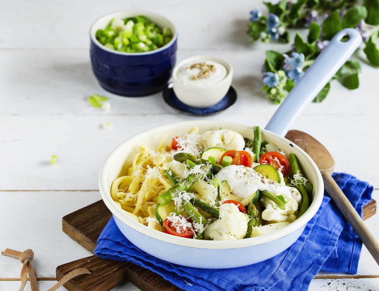 Das Beste an der Schlemmerpfanne ist, dass sie mein Fernweh nach dem Schwabenland sofort stillt. Spätzle plus Gemüse plus Käse erwärmt einfach jedes Herz. Und schmeckt auch in Köln fast wie im Urlaub. Welches Gemüse mit in die Pfanne hüpft, entscheide ich in der Regel spontan. Hauptsache es kommt ein bunter Mix zusammen, denn erst dann wird’s so richtig lecker. Egal, ob du eine Spätzle-Pfanne oder Gemüsepfanne mit Reis machst. Jetzt im Frühling darf auf jeden Fall knackiger Spargel nicht fehlen. Die grünen und weißen Stangen sind ein Muss. Der Rest ist Geschmackssache. Genau wie der Käse. Ich mag am liebsten diese Bergkäsesorten: